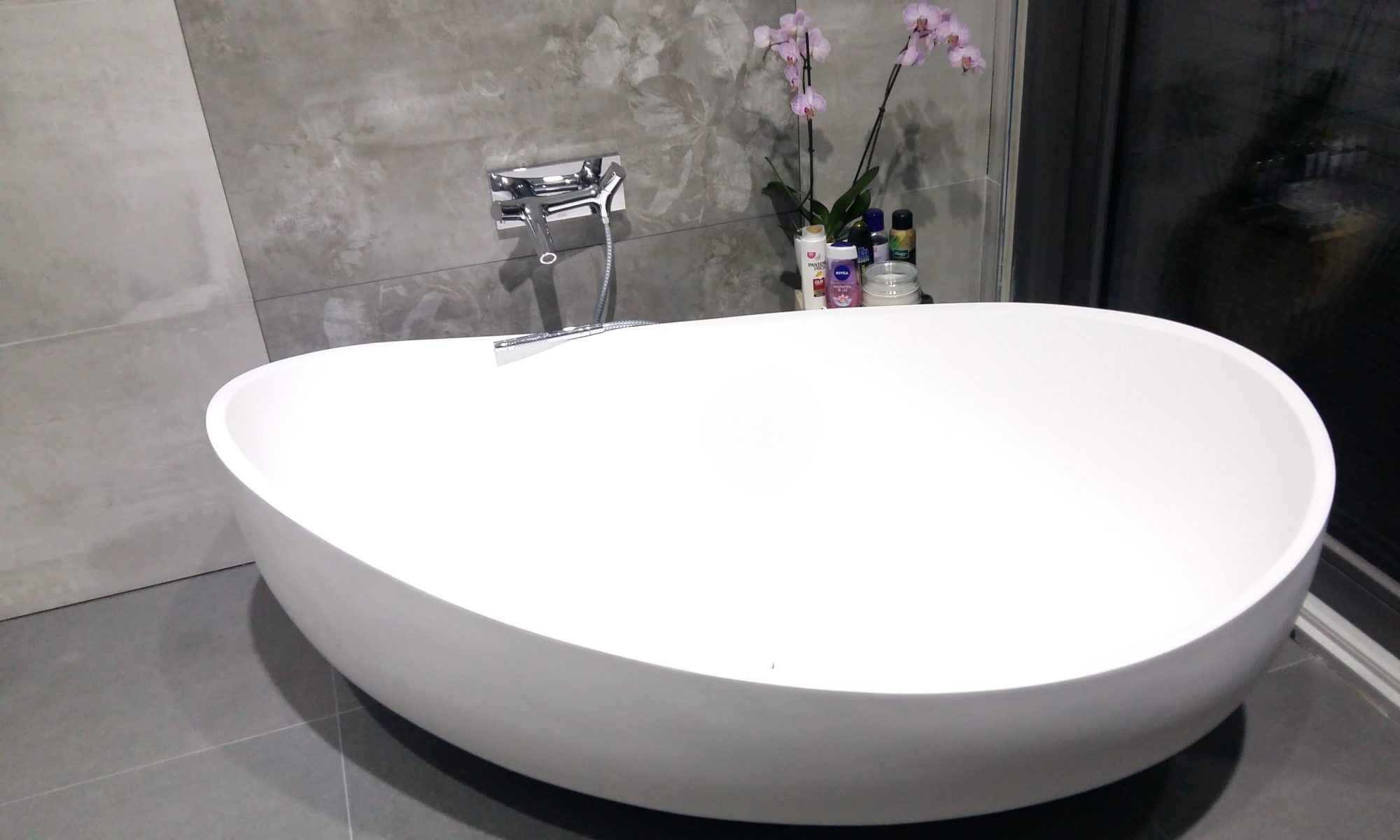 Stoneware that looks like concrete… There has been many industry advances on the design, texture and format of tiles. The options had exponentially increased and today there is no wet dream left unfulfilled. 😆 That came out wrong… The point is if you can dream it, you can do it. Wait! Somebody already said that. But when it comes to tiles, it is really true. Below is how the tiles look in the online simulation (not our bathroom), with the difference that we selected a darker floor.